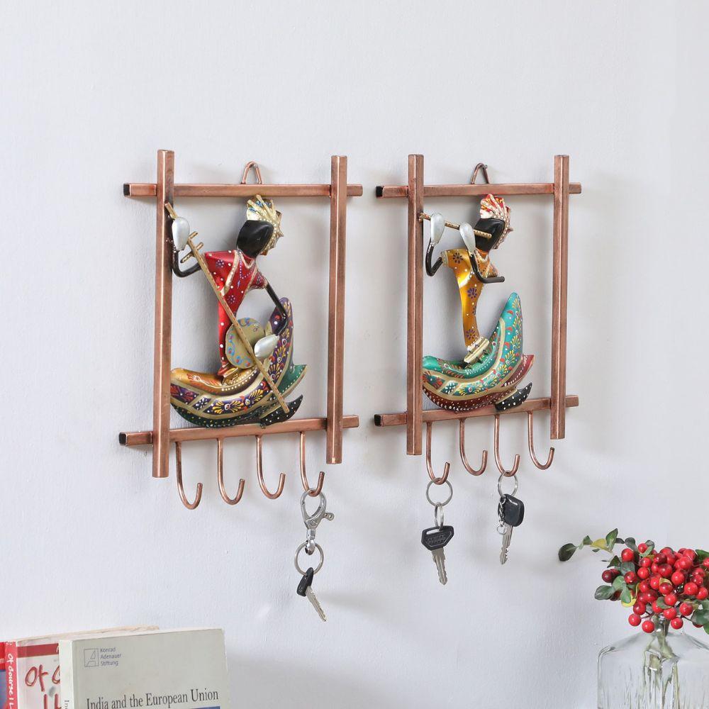 Buy today a beautiful Rajasthani hand-painted musician key holder that brings the rich heritage of Indian folk art into your home. Carefully handcrafted by skilled artisans, this unique piece features vibrant colors, intricate detailing, and traditional Rajasthani motifs that celebrate music and culture. Each musician figure is individually hand-painted, making every key holder one of a kind. Designed to be both decorative and functional, it helps keep your keys organized while adding a warm, artistic touch to your wall. Perfect as a thoughtful gift for music lovers, art enthusiasts, or anyone who appreciates ethnic décor, this key holder enhances living rooms, entryways, offices, or studios with its timeless charm and cultural elegance.
